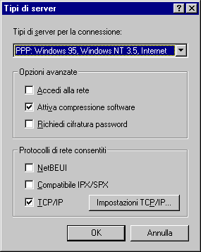 Scegliere il protocollo Ppp (vedere l'immagine) e deselezionare le altre opzioni a
