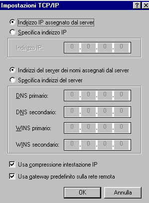 compressione intestazione Ip deve essere deselezionata per utenti con connessione Isdn)
