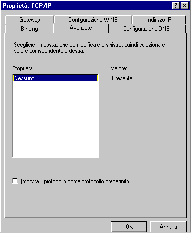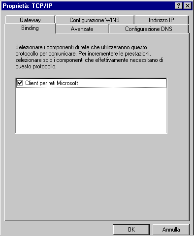 Binding Lasciare selezionata l'impostazione di default: client per Reti